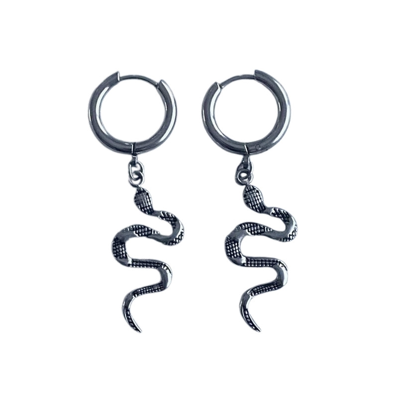 Paire d'anneaux fermés simples à clipper avec pendant serpent, en acier chirurgical 316L anti-allergique et inoxydable.