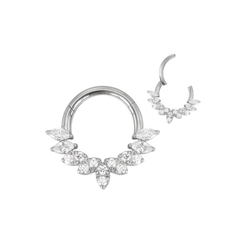 Anneau en titane ASTM F136 grade 23, avec motif marquise brillants blancs sur la face avant du contour. Strass griffés.