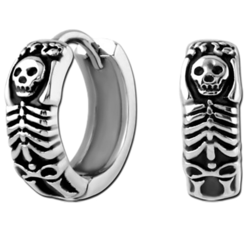 Paire d'anneaux fermés à clipser, avec motif squelette, en acier chirurgical 316L.