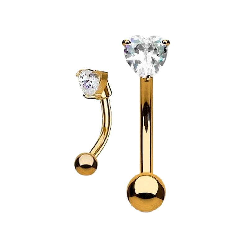 Bijou de piercing en acier chirurgical or rose avec un brillant blanc en forme de coeur de 3 mm serti, une tige courbée et une boule.