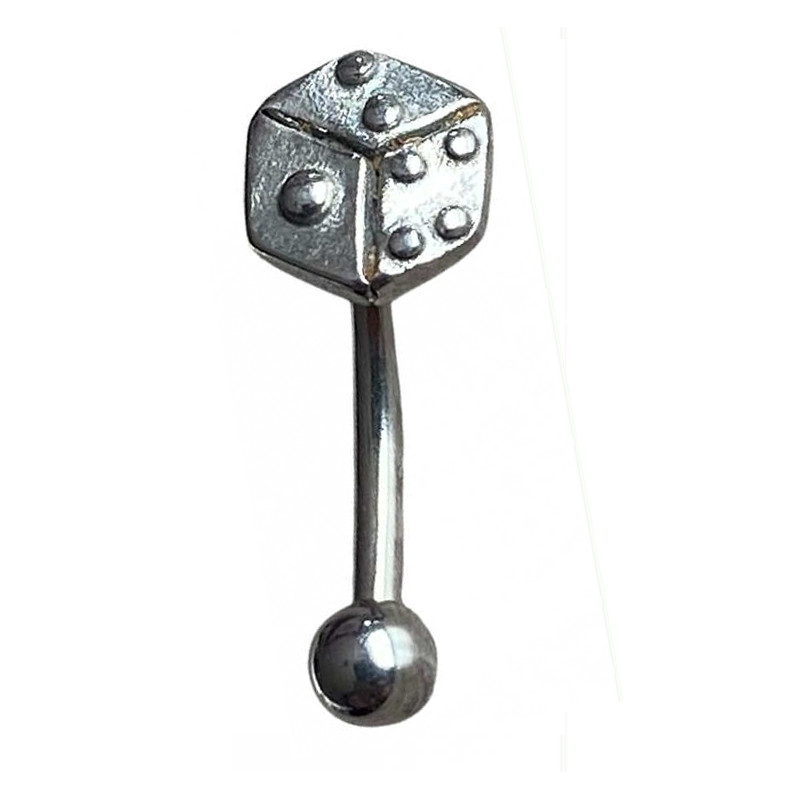 Bijou de piercing en acier chirurgical motif dé, une tige courbée et une boule. Taille motif : 6 mm.