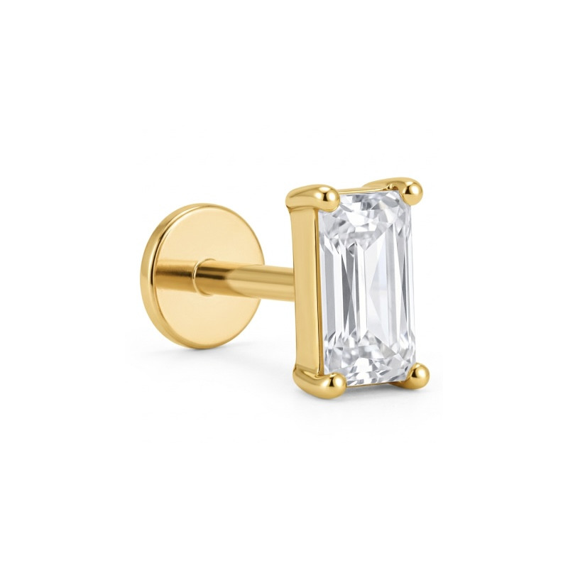 Bijou pour le labret, la lèvre ou l'oreille (lobe, hélix, tragus, conch, snug) en Titane doré or finASTM F-136 (grade 23), avec un motif strass rectangulaire blanc serti.