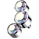 Accessoire disque recouvert de strass brillant de Swarovski ®, pour implant microdermal, en titane G23 doré or fin, de la gamme Crystal Line. Pour barre 1,6 mm (ou 2 mm) avec pas de vis intérieur 1,2 mm. Taille disque 5 mm.